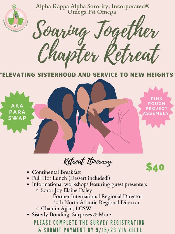 The Membership Committee of Omega Psi Omega is pleased to announce our 2023 Soaring Together Chapter Retreat! Join us on Saturday, September 30, 2023 from 8am - 4:30pm at Kean University, North Academic Building room 309, 1000 Morris Ave, Union, NJ 07083.